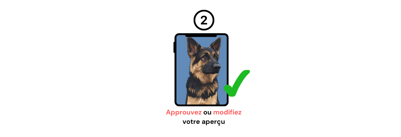 1) Vous cliquez sur « Obtenir un aperçu » (sur la page produit ou dans le menu) et vous importez votre photo.
