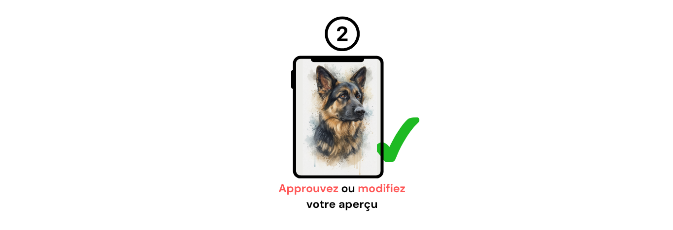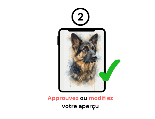 4) Vous passez commande avec l’aperçu validé (même avec filigrane) ou avec la photo d’origine — nous nous occupons de retrouver votre image dans notre stock.