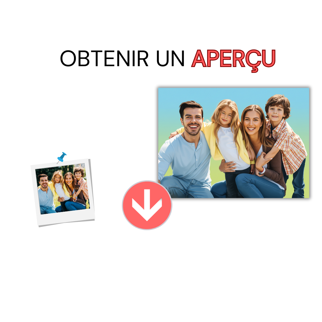 1. Vous cliquez sur « Obtenir un aperçu » (sur la page produit ou dans le menu) et vous importez votre photo.