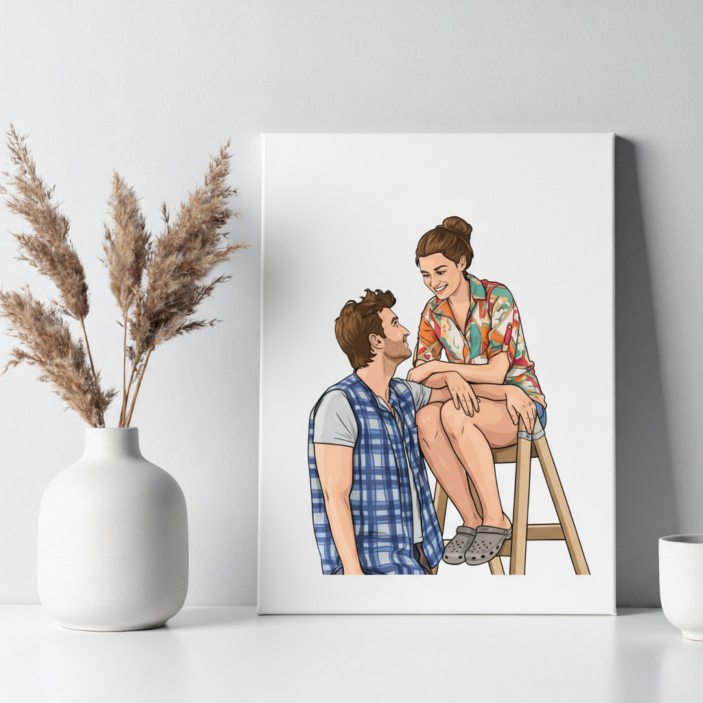 Le portrait est imprimé sur une toile haute définition, tendue sur un châssis en bois robuste de 2 cm. Le rendu est durable, ne se déforme pas et peut être accroché ou offert immédiatement.